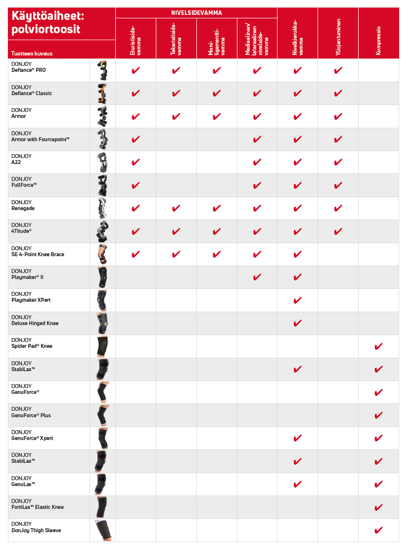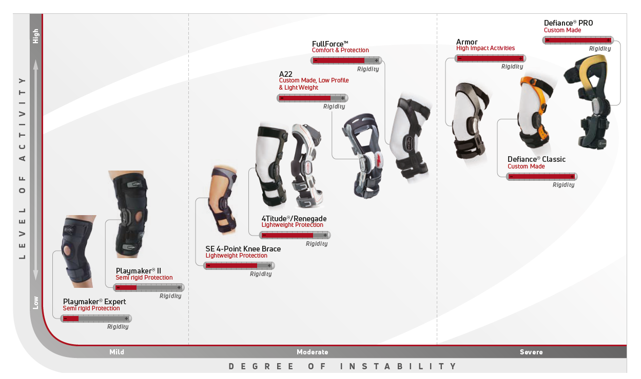 DonJoyn alkuperäinen 4-pisteen rakenne on kliinisesti dokumentoitu tehokkaimmaksi tavaksi vähentää polven kuormitusta sekä polven kiertoliikkeissä että sääriluuhun kohdistuvassa rasituksessa.